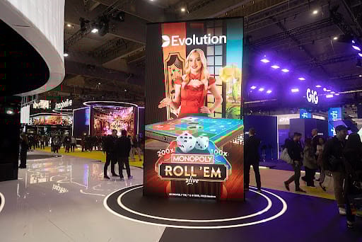 Evolution’s Monopoly Live game show displayed at ICE Barcelona 2026. Source: Thiago Prudencio/SOPA Images/LightRocket via Getty Images